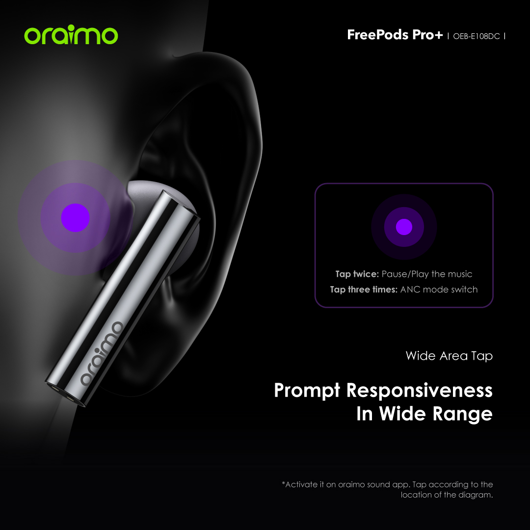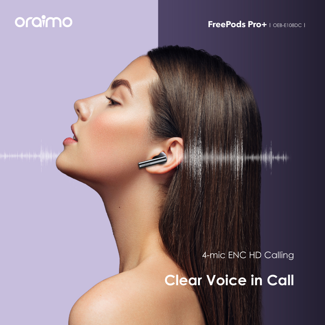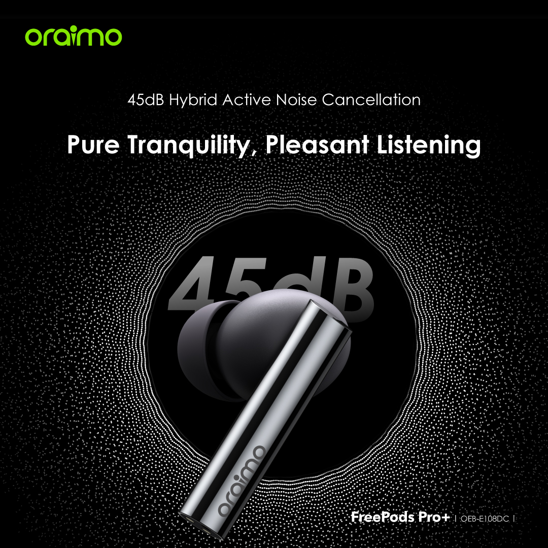 FreePods Pro+ provides up to 45dB noise reduction, effortlessly eliminates distractions, allowing you to immerse yourself in crystal-clear audio. You can fine-tune the noise cancellation depth using the oraimo Sound app for the most comfortable audio experience.