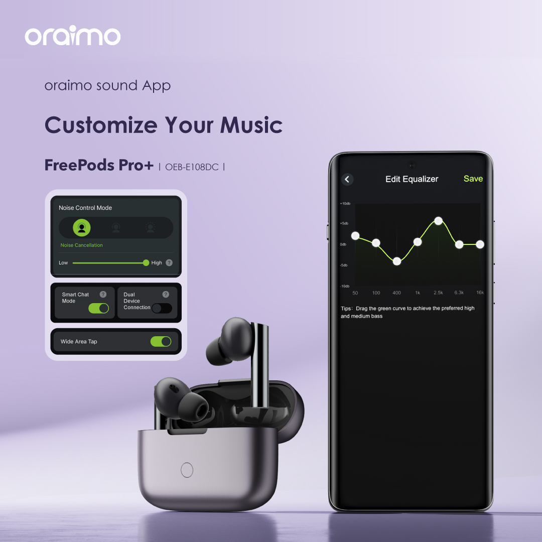Compatible with oraimo Sound app, users are able to enjoy various functions, such as customized EQ , personalized control settings, etc.