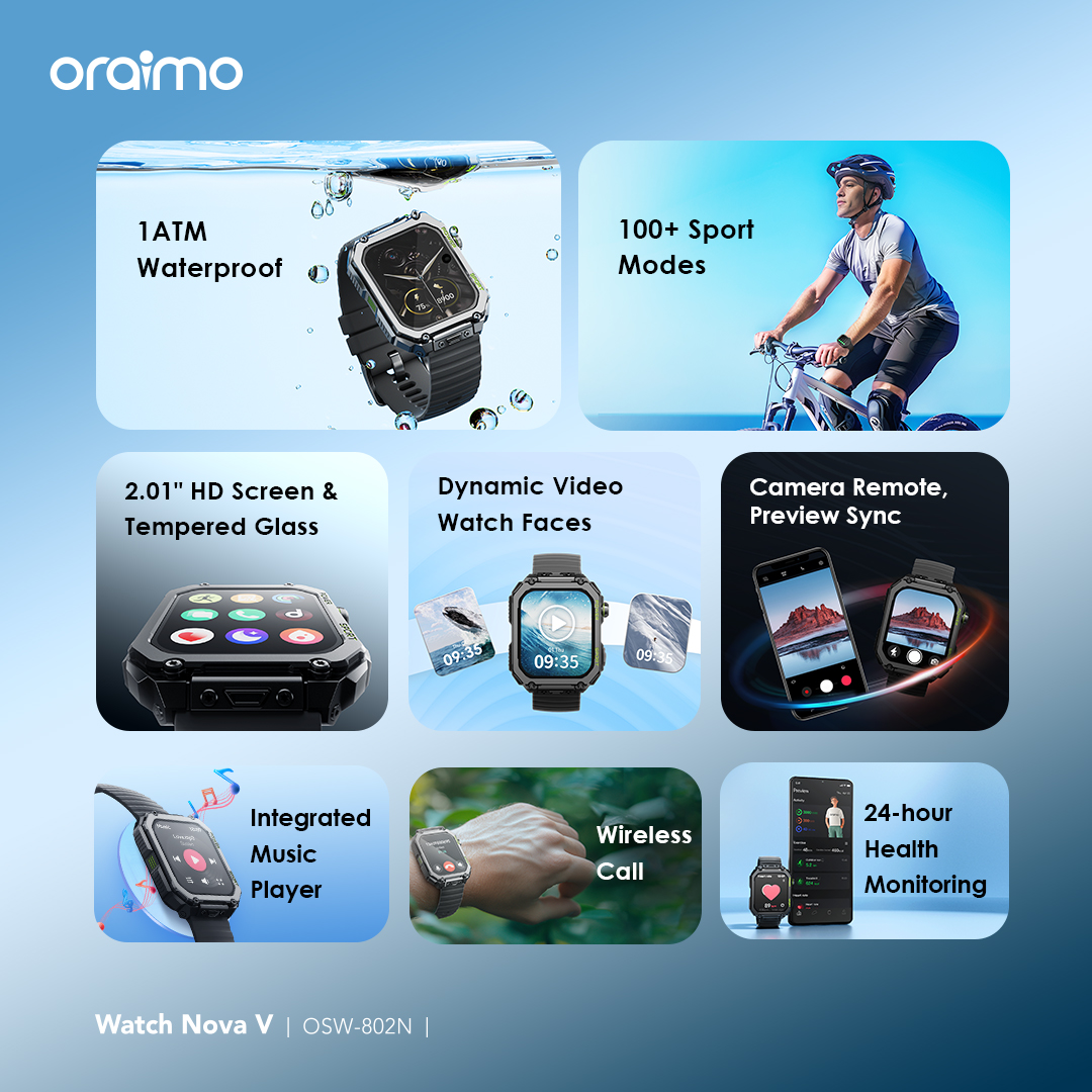 Watch Nova V can sync photography page with mobile phone through the oraimo Health app, allowing for camera control and instant preview directly on your wrist. The photography is no longer limited by distance.