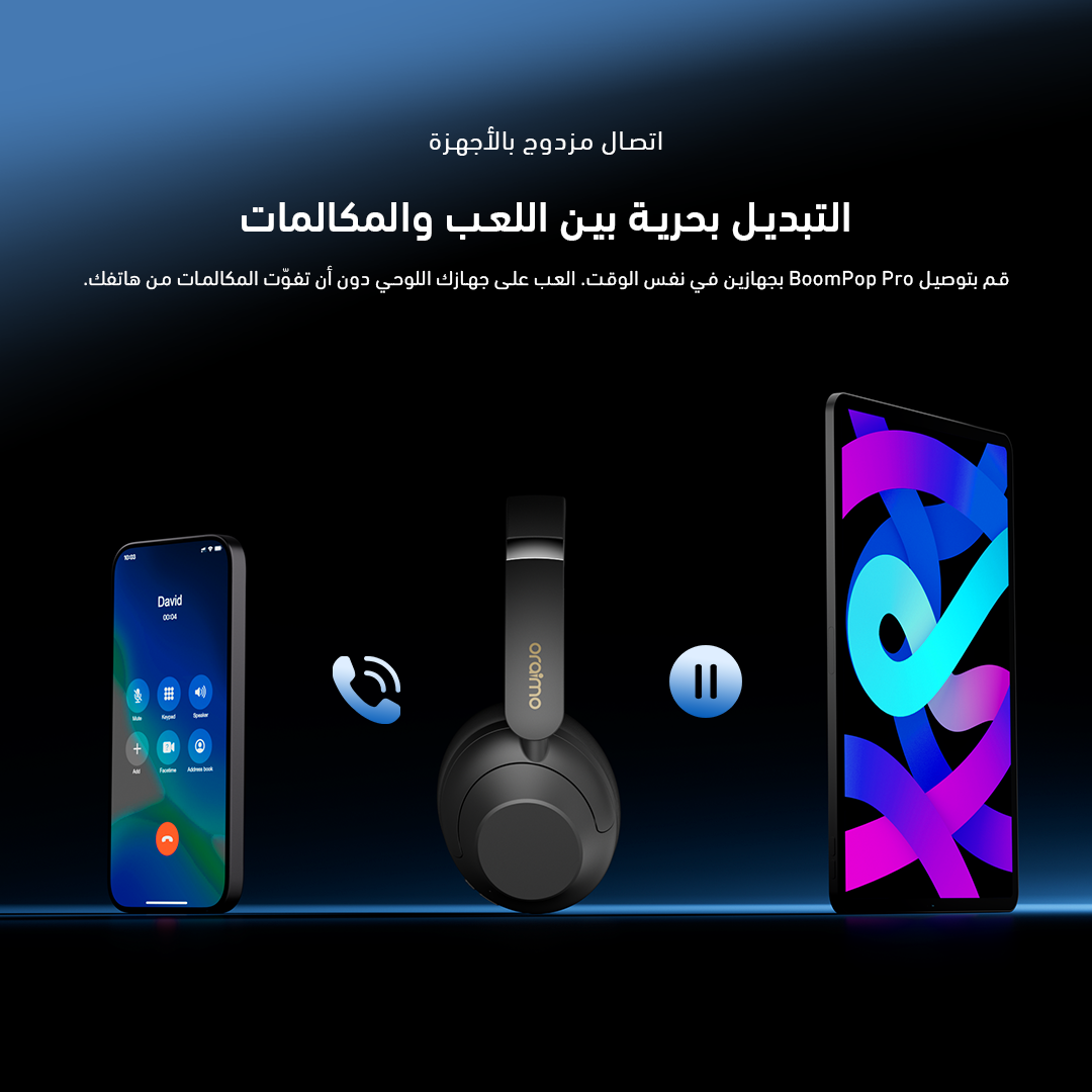 يمكنك إقتران سماعات BoomPop Lite بجهازين في الوقت نفسه — العب على جهازك اللوحي دون أن تفوّت أي مكالمة واردة من هاتفك.