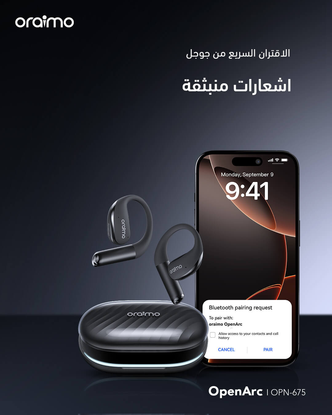 سماعات oraimo OpenArc توفّر وقت تشغيل يصل إلى 36 ساعة، مع دعم الشحن السريع – فقط 10 دقائق شحن تمنحك حتى ساعتين من التشغيل. اشحنها بسرعة قبل التمرين أو الخروج، وودّع القلق من نفاد البطارية.