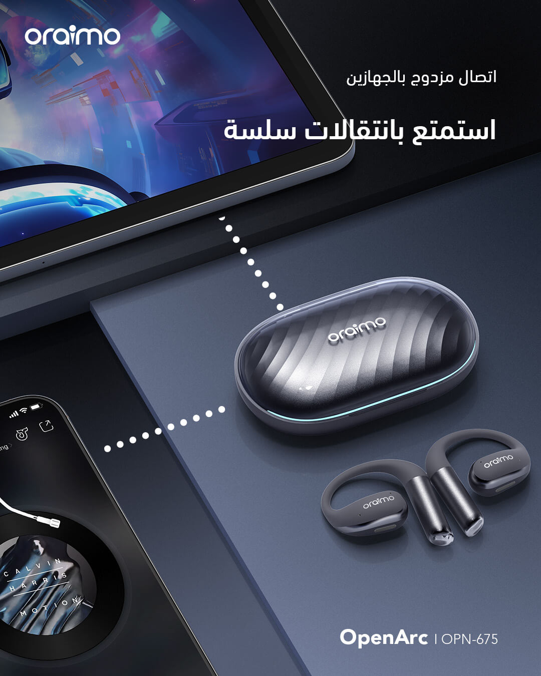 ميزة الاتصال بجهازين تقدر تفعلها بسهولة من خلال تطبيق oraimo Sound. استمتع بالأولوية التلقائية للمكالمات، وتواصل مع جهازين بلوتوث في نفس الوقت، مع التبديل بينهم بسلاسة بدون ما تفوتك أي لحظة.
