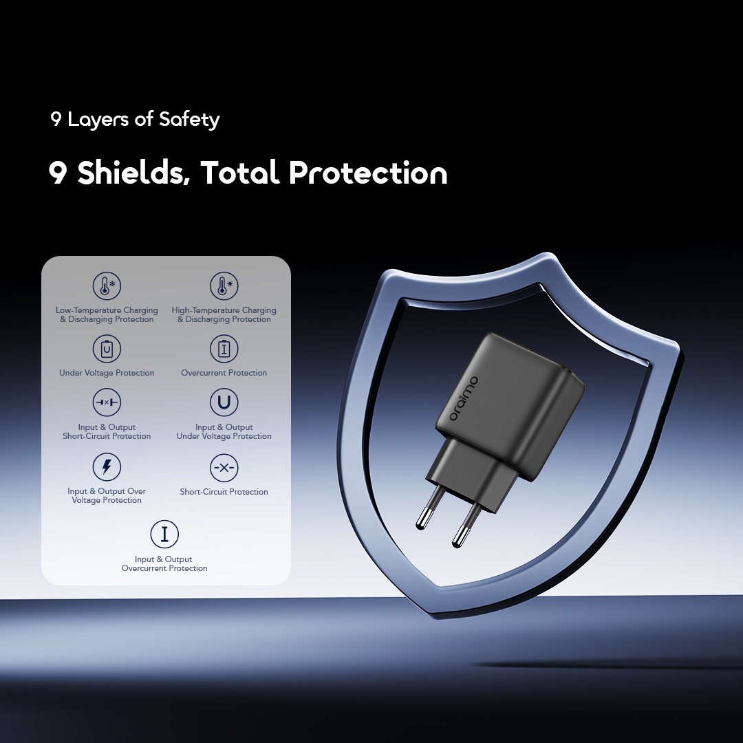 مزود بـ 9 طبقات من الحماية المتقدمة - بما في ذلك الحماية من الجهد الزائد، والتيار الزائد، وقصر الدائرة، ودرجة الحرارة - لضمان شحن آمن وموثوق.