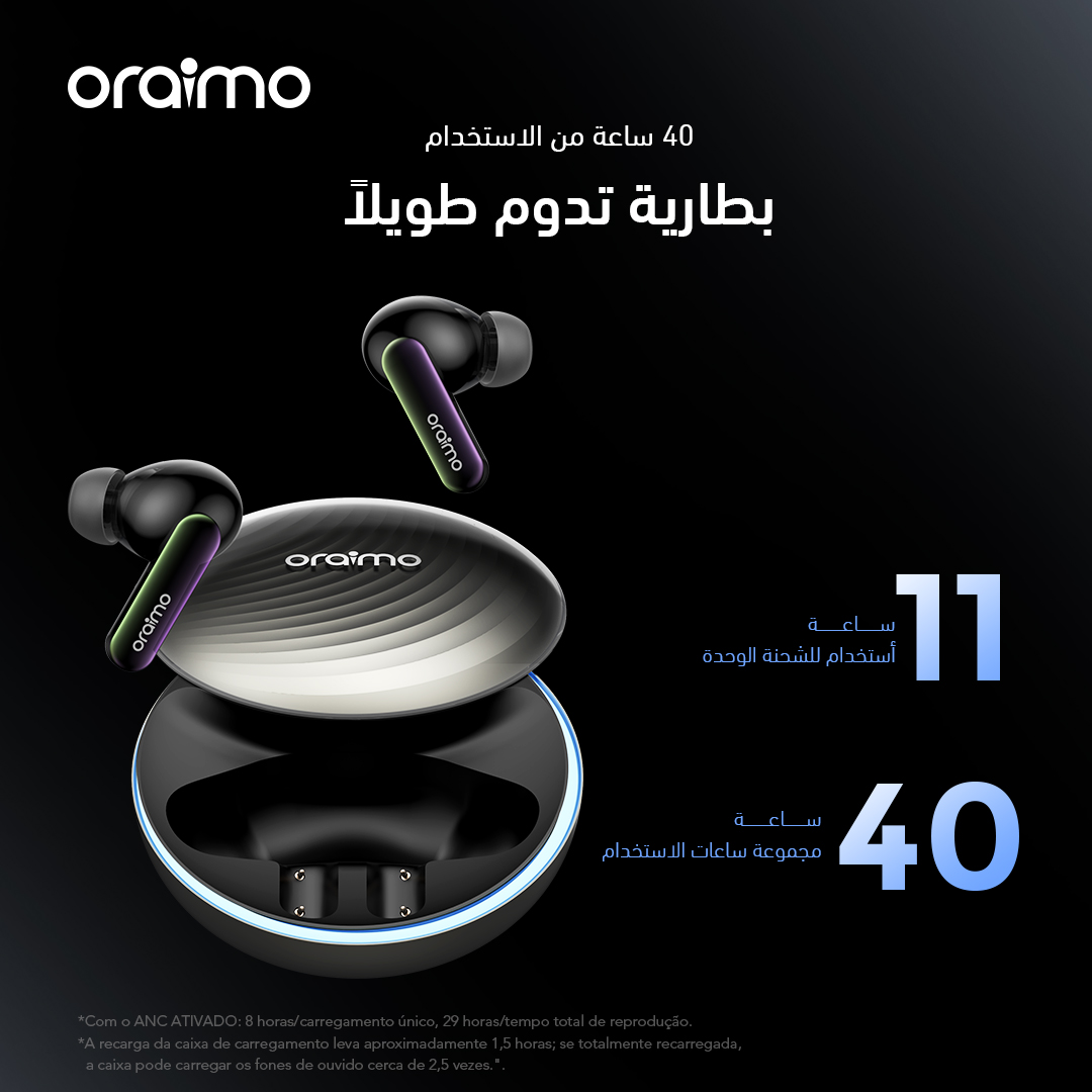 *إيقاف ANC: حتى 11 ساعة، تضيف العلبة 29 ساعة إضافية؛