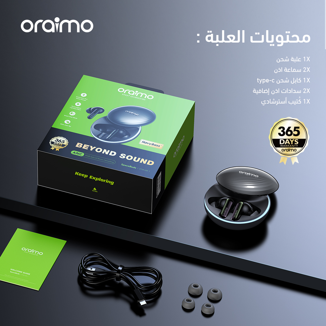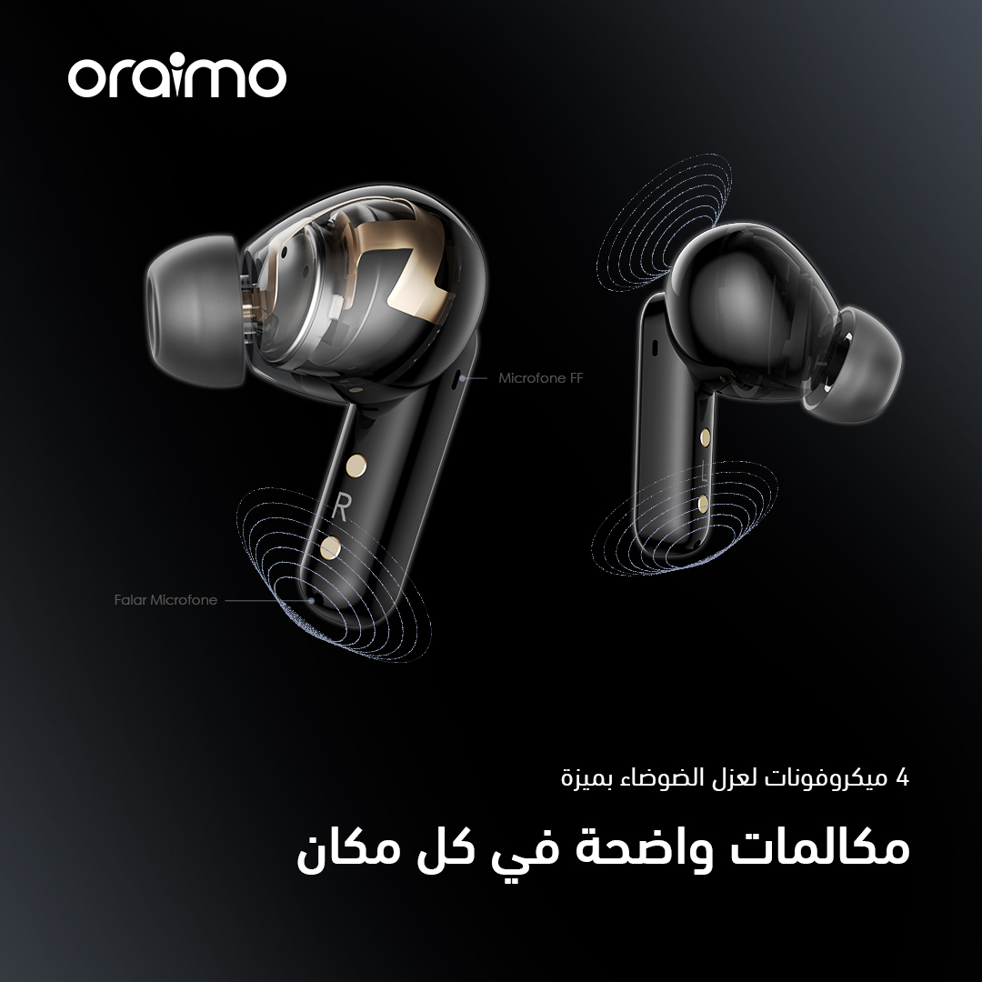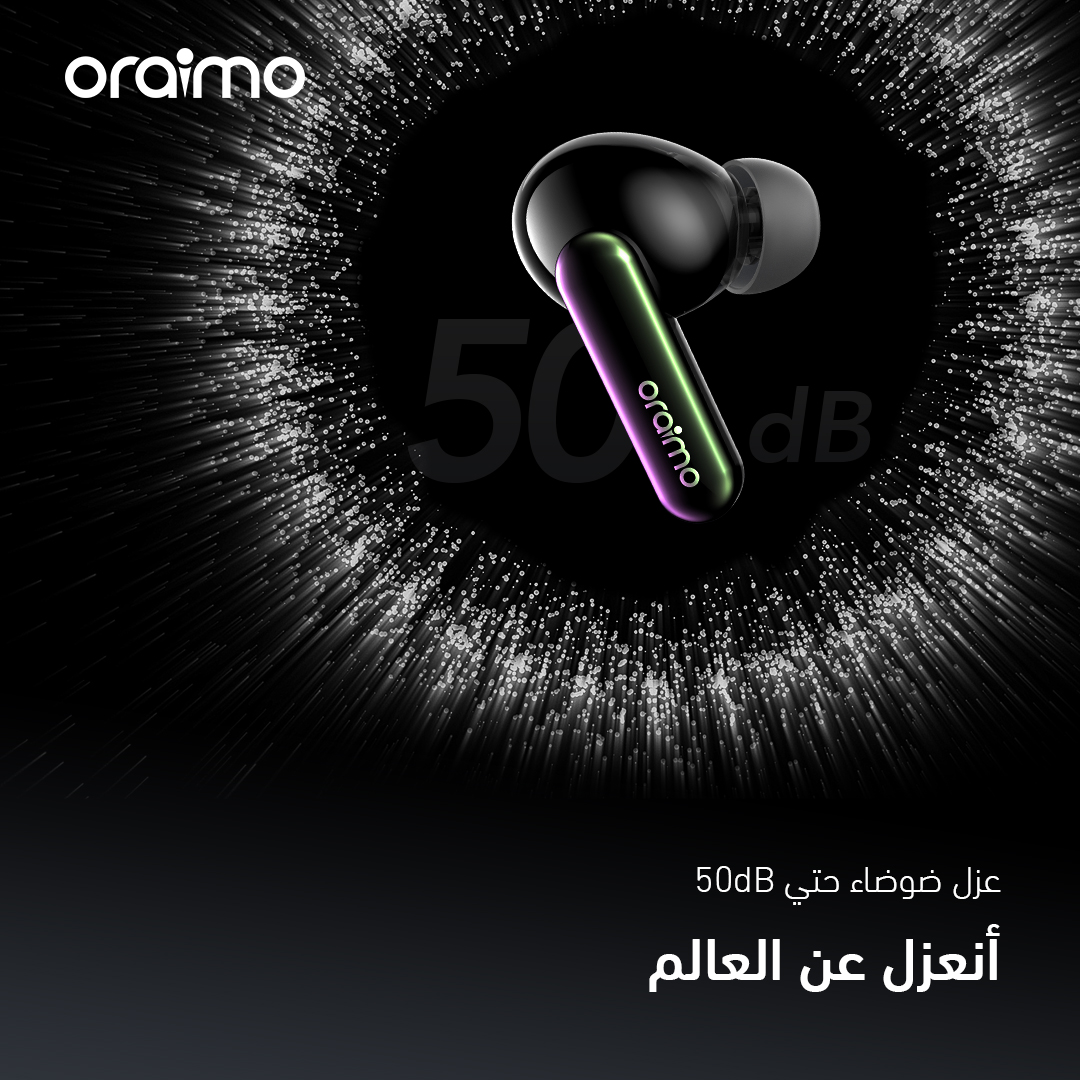اختبر الهدوء التام كما في الفضاء مع تكنولوجيا إلغاء الضوضاء الهجينة المتقدمة من oraimo التي تقضي على التشويش بسهولة وتوفر تقليل ضوضاء يصل إلى 50dB. استمتع بموسيقاك المفضلة وركز فقط على الصوت الذي يهم.